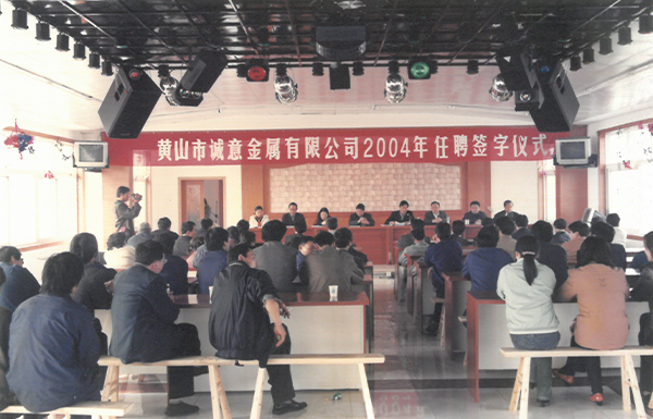 1994年9月26日,汪小五先生創(chuàng)建歙縣誠(chéng)意制釘廠(chǎng)。1996年改建成立歙縣誠(chéng)意鉛絲制釘廠(chǎng)。1997年注冊(cè)“誠(chéng)意”商標(biāo)。1999年3月24日注冊(cè)成立黃山市誠(chéng)意金屬有限公司,生產(chǎn)鐵釘、鉛絲,銷(xiāo)售建筑鋼材,當(dāng)年躋身“黃山市民營(yíng)企業(yè)50強(qiáng)”行列。